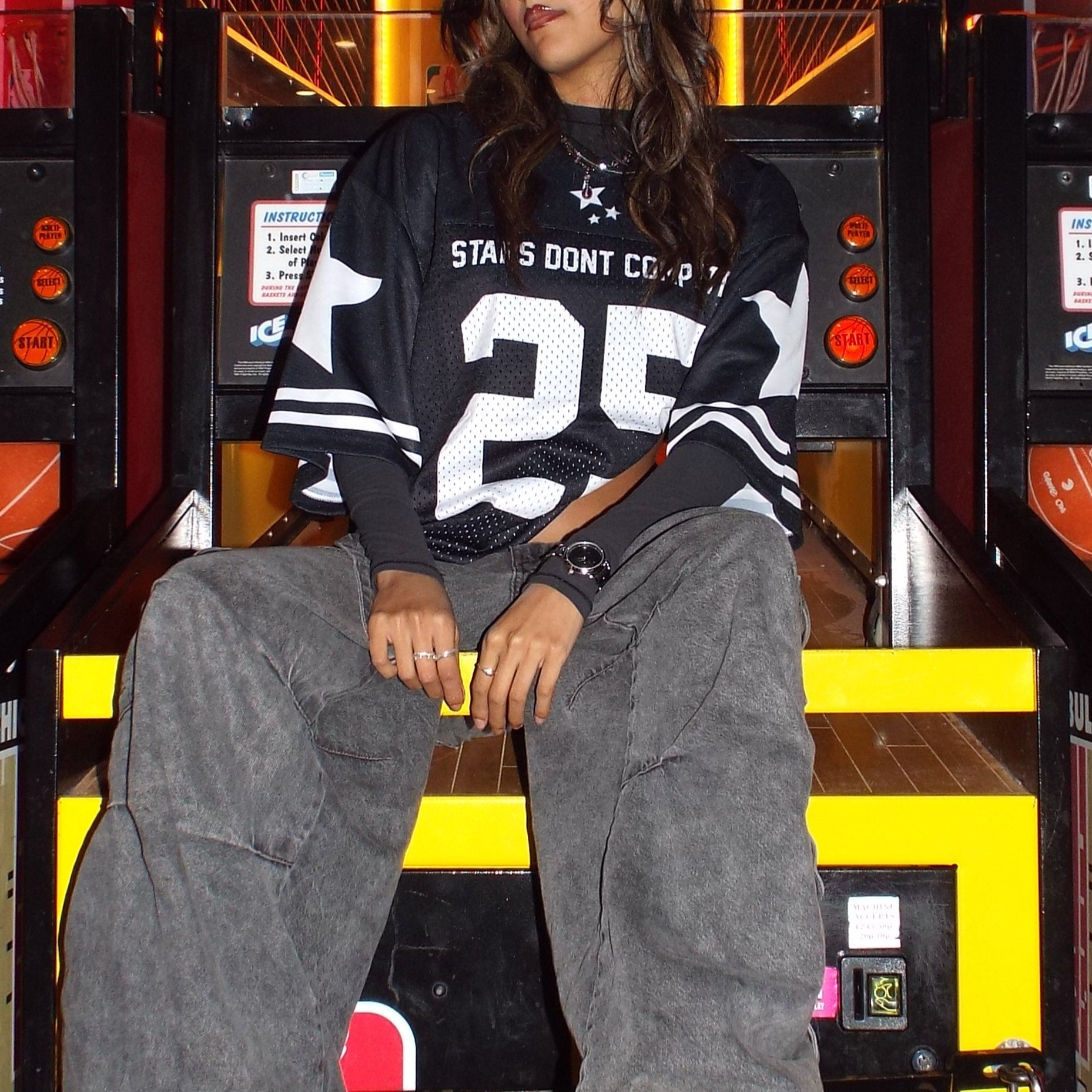 Stars don't Compete Jerseys are designed with a relaxed, boxy silhouette. Made to be oversized, so choose your regular size for the perfect fit.